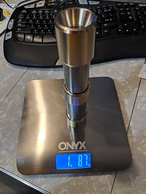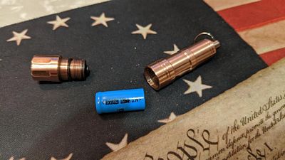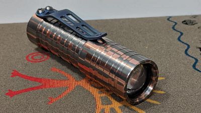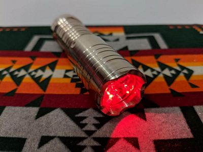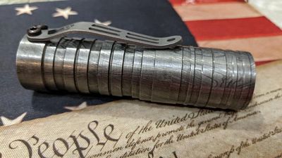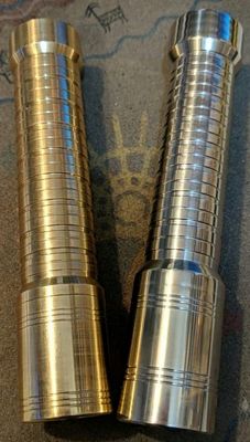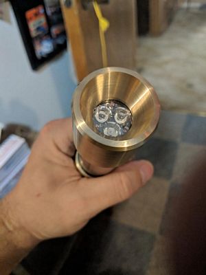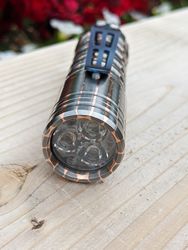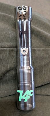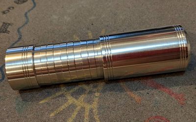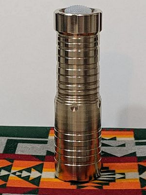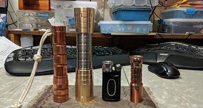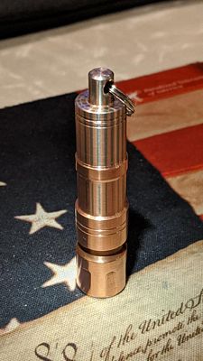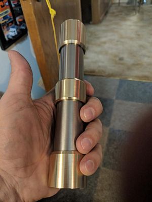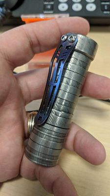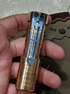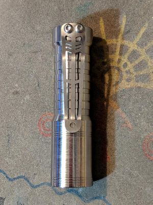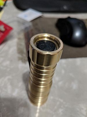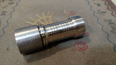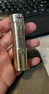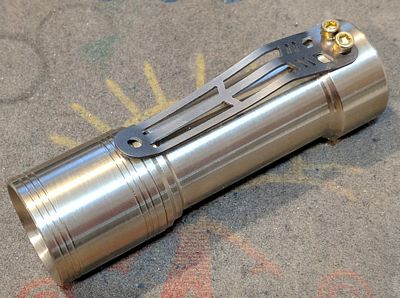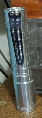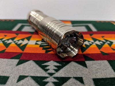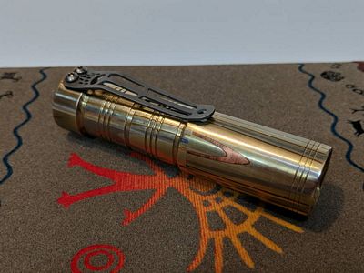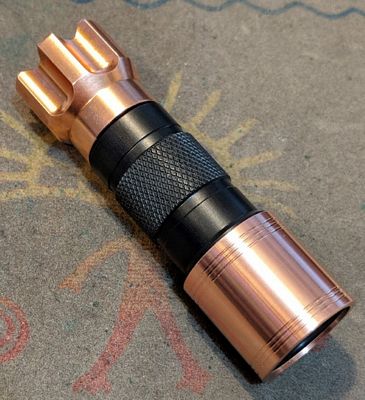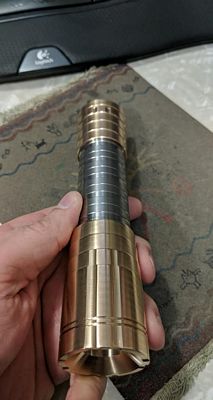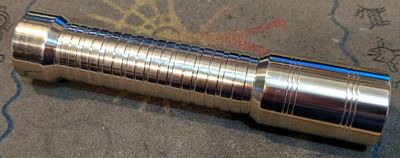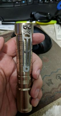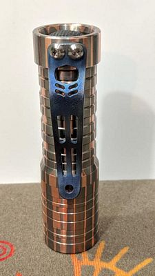 Special Request Build. Ti Body sections joined with a bronze connector, and a bronze tail and head. Uses 2 x 26650 batteries. Weighed in at 24 ounces!