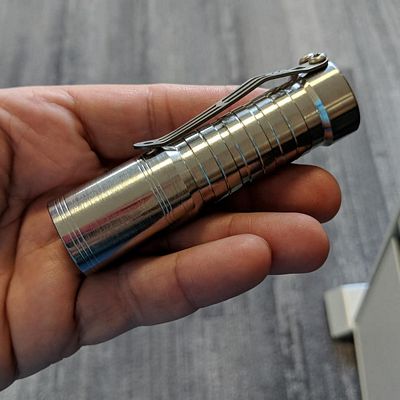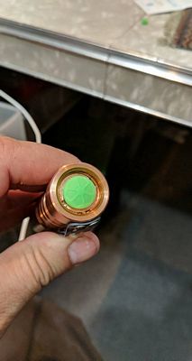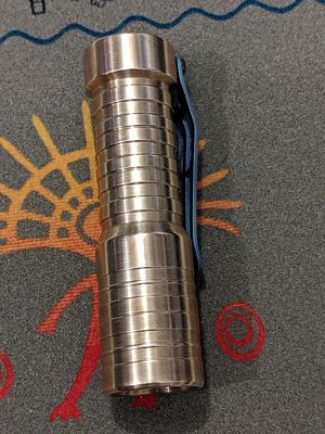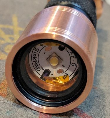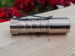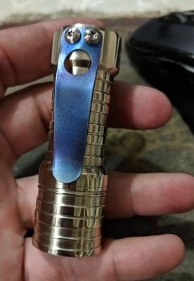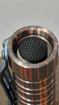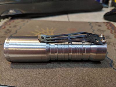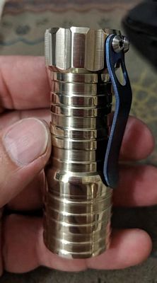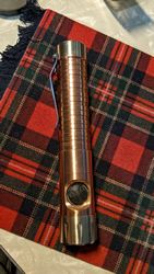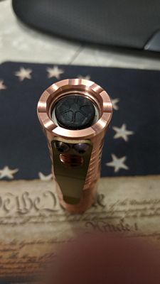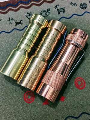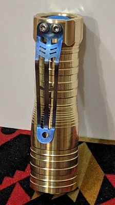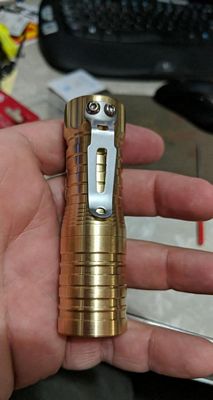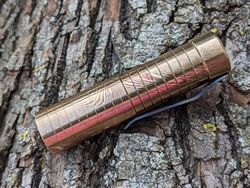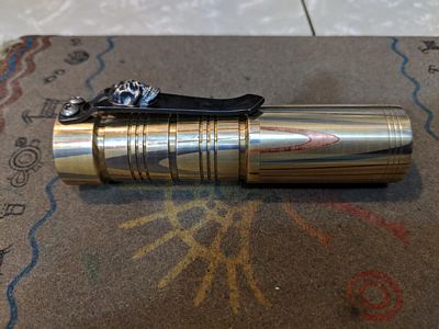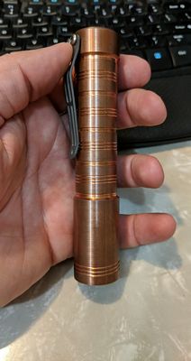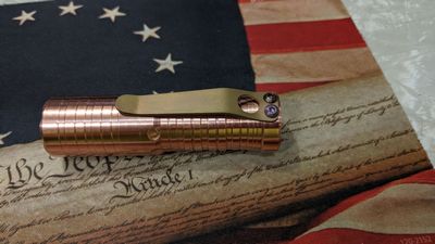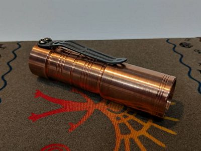 Customer Request for a Side E-switch light. so this was a prototype/design on the fly deal. Clip/Tailcap can be rotated to any position to fit carry style to position the side switch where you'd like. Copper and Nickerl Silver.