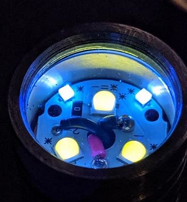 Customer request to have me recreate light #2. Loaded with a CWF UV Dragon with Nichia 219C mains. Was later changed out to a single emitter engine with reflector.